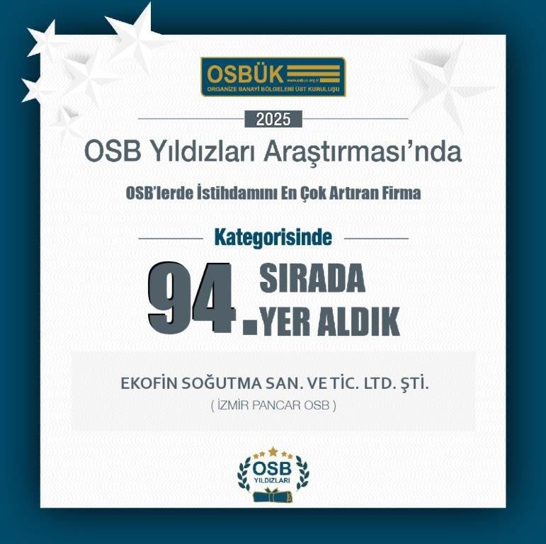 Organize Sanayi Bölgeleri Üst Kuruluşu (OSBÜK) tarafından düzenlenen 2025 OSB Yıldızları değerlendirmesinde, Türkiye genelindeki 53.000 firma arasından istihdamını en çok artıran firmalar arasında 94. sırada yer aldık.
